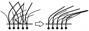 毛流の方向性(生えグセ)を変えることができる。
